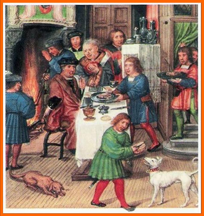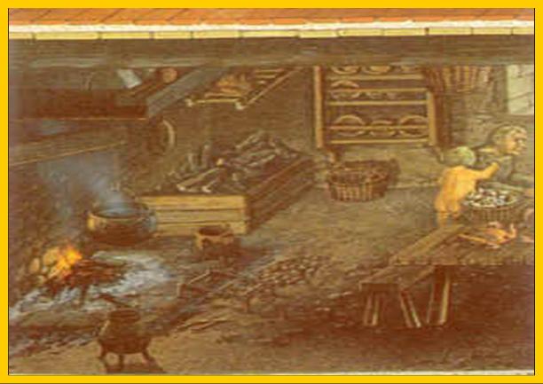 - a refeição principal era tomada em comum e em silêncio, no refeitório: sopa, pão, um pouco de carne ou peixe nos dias de abstinência.